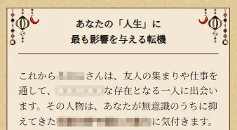 あなたの運勢はどのように変化していくのか、そしてあなたの人生を変える出来事はいつ、どのように訪れ、あなたの人生を変えていくのか。